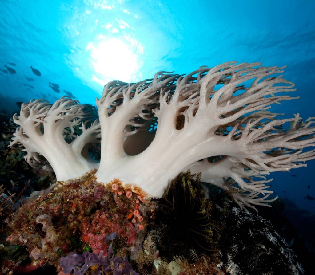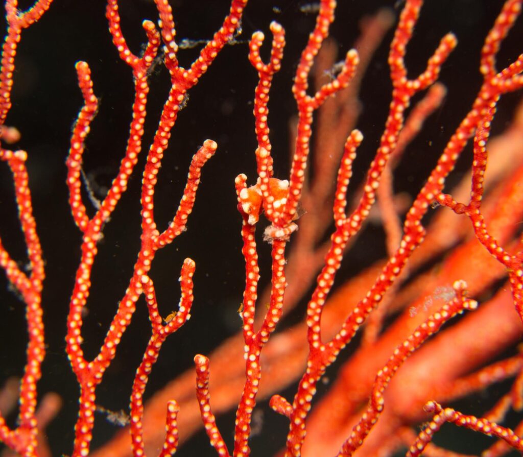No gloves are required to protect coral. Coral workshops are available, and divers can adopt coral fragments. Use reef-safe sunscreen and keep a distance from seahorse habitats. Avoid laser pointers on nocturnal species.