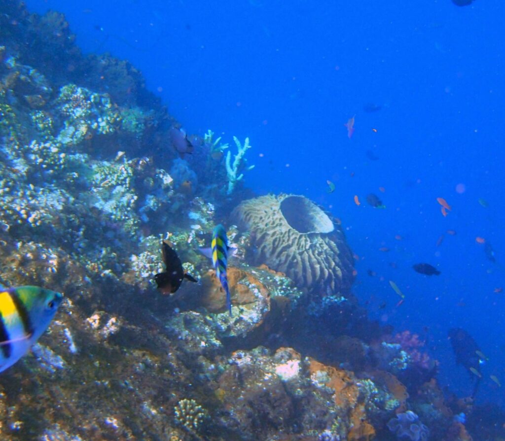 This wall drops 60m+ into the Lombok Strait. Above, you’ll see schools of jackfish and black coral. Keep an eye out for downcurrents during tidal shifts.